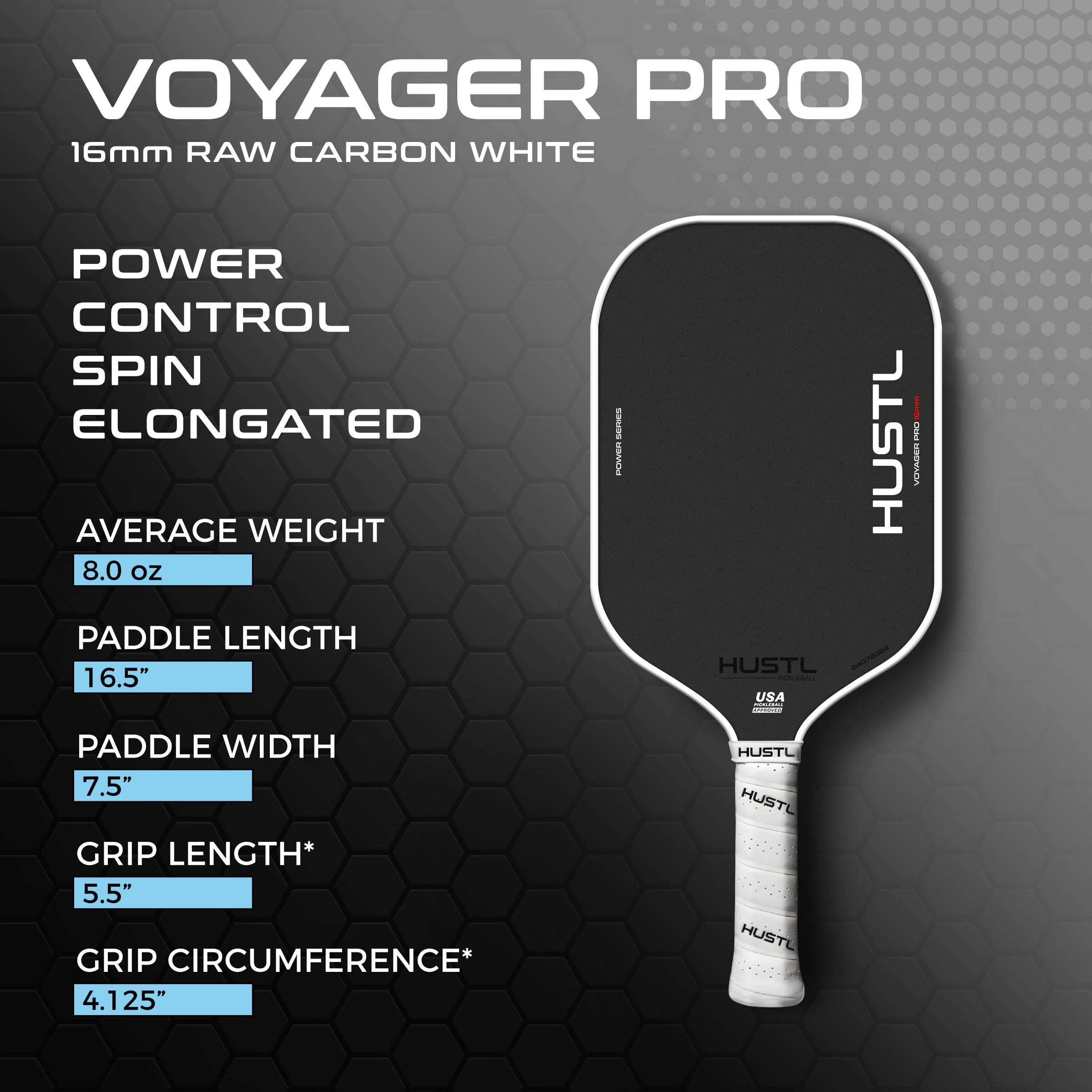 Engineered for players who crave the perfect blend of control and power, the Voyager PRO 16mm paddle is your ultimate partner on the court. Featuring a 16 mm-thick raw carbon face, this paddle delivers outstanding responsiveness, enabling pinpoint accuracy and superior ball control for every shot. Whether you're dominating the net or executing strategic plays, the Voyager PRO ensures you stay in command.